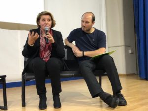 Gli attori Cristiana Dell’Anna (che nella fiction ha interpretato Caterina Chinnici) e Paolo Giangrasso (che ha prestato volto e voce al magistrato Giovanni Falcone) hanno dato vita alle intense parole del libro È così lieve il tuo bacio sulla fronte. Molto coinvolgenti le parole di Caterina Chinnici agli studenti presenti in sala. “I giovani sono il vero motore del cambiamento. Partendo dalle piccole cose, tutti insieme possiamo essere la trasformazione della realtà. Gli ostacoli possono essere visti come stimoli per fare di più e meglio. Voi ragazzi avete la possibilità di costruire la bellezza, perché la prima potenzialità del nostro Paese siete voi con la vostra intelligenza e i vostri talenti, accompagnati da una forte volontà di cambiamento. Stabilite con totale libertà quale è il vostro sogno e poi lanciatevi, per fare sì che il vostro sogno diventi realtà e concreto. Ho voluto raccontare mio papà come persona normale, come lo siamo noi e voi, con le nostre peculiarità e fragilità. Come lui, ciascuno di noi può dare un contributo per fare emergere la bellezza invece che la bruttura, per fare cambiare le situazioni negative”. L’incontro è stato moderato dal libraio Rosario Esposito La Rossa, da sempre attivo in un territorio segnato da problemi di criminalità e disagio, spacciatore di cultura che ha aperto la libreria Scugnizzeria a Scampia e Melito (Napoli), dove da oltre quarant’anni mancava uno spazio dedicato ai libri.