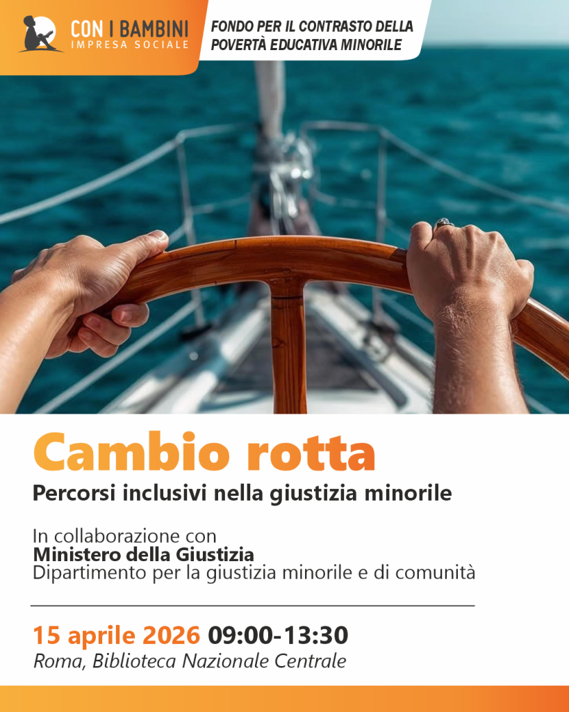 Si terrà mercoledì 15 aprile presso la Biblioteca nazionale centrale di Roma il convegno “Cambio rotta: percorsi inclusivi nella giustizia minorile”, tappa finale del bando “Cambio rotta”, in cui verranno presentati i risultati dei 17 progetti dedicati al reinserimento sociale dei minorenni autori di reato segnalati dall’Autorità Giudiziaria minorile.
