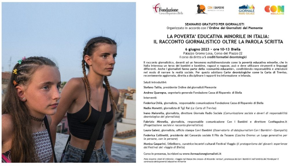 Biella – 6 giugno – Seminario gratuito “La povertà educativa minorile in Italia: il racconto giornalistico oltre la parola scritta”