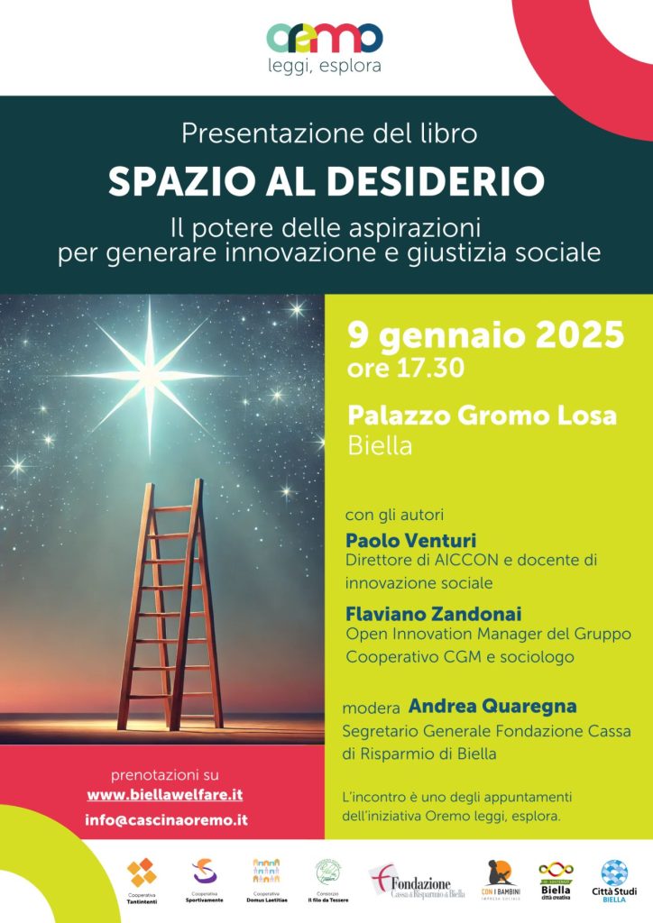 Biella – 9 gennaio – Presentazione “Spazio al desiderio. Il potere delle aspirazioni per generare innovazione e giustizia sociale”