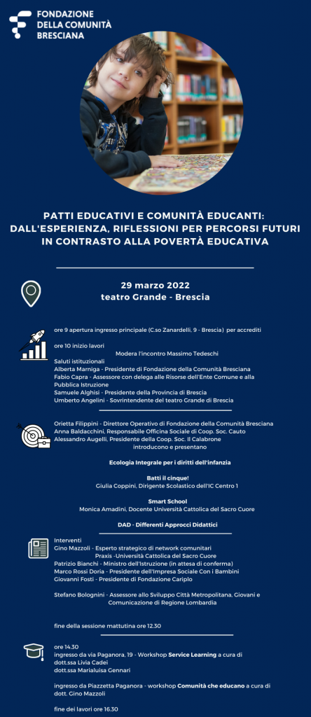 Brescia – 29 marzo – Evento “Patti educativi e comunità educanti: dall’esperienza, riflessioni per percorsi futuri in contrasto alla povertà educativa”