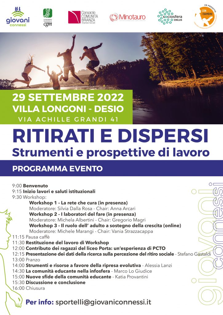 Il 29 settembre 2022, a partire dalle ore 9, presso Villa Longoni a Desio (MI), si terrà il convegno finale promosso dal progetto Giovani Connessi sull’azione dedicata al ritiro sociale e coordinata da Minotauro.