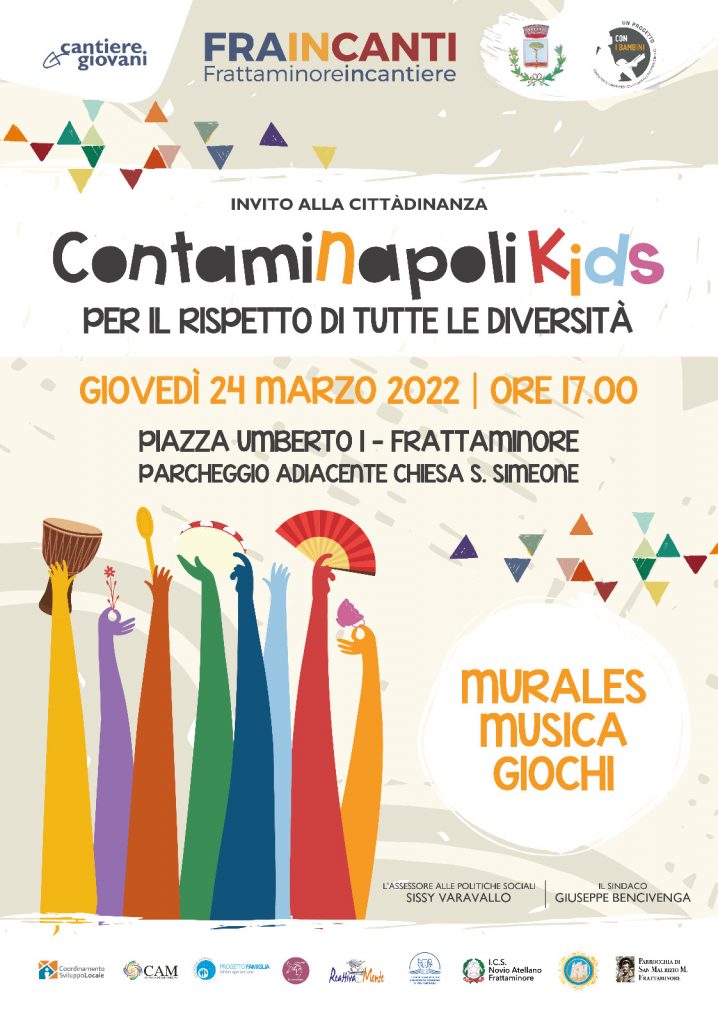 Giovedì 24 marzo 2022 alle ore 15.00 scendono in strada in Piazza Umberto I i bambini e ragazzi dei centri educativi Cantiere dei Pirati di Frattaminore, Frattamaggiore e Casandrino per “Contaminapoli Kids”, in chiusura della settimana di azione contro le discriminazioni razziali.