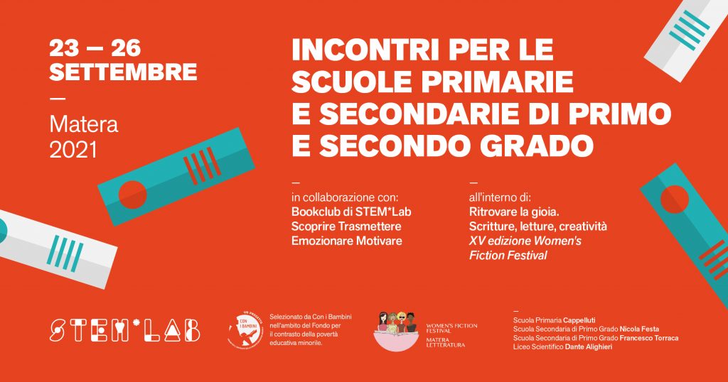 Dal - AlDal 23 al 26 settembre, grazie alla partnership con il Women’s Fiction Festival, il progetto STEM*Lab si occuperà di favorire il contatto diretto con gli autori e le autrici di libri dedicati alle discipline STEAM (Science, Technology, Engeneering, Art, Mathematics) per scoprire, trasmettere, emozionare, motivare e favorire la crescita e il superamento della povertà educativa.