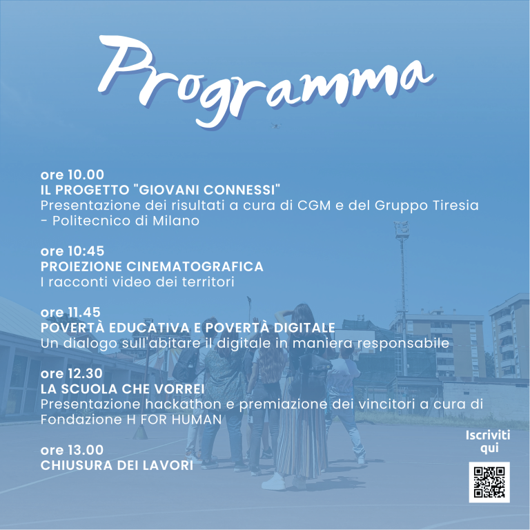 Il 15 febbraio si terrà l’evento finale di Giovani Connessi, il progetto di educazione alla tecnologia e di promozione di percorsi sperimentali nato con l’obiettivo di ridurre il digital divide e i fenomeni di abbandono e dispersione scolastica.