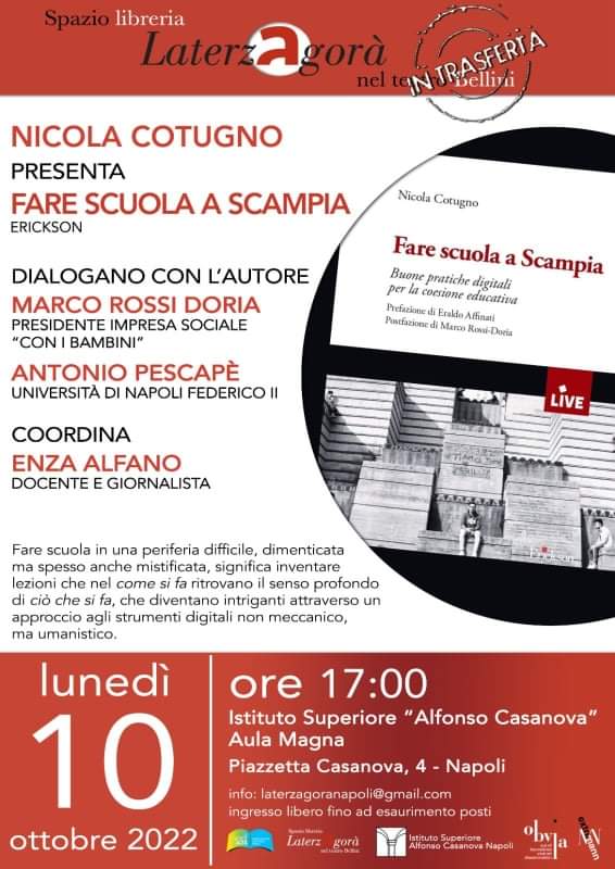 Il 10 ottobre alle 17 presso l’Istituto Superiore “Alfonso Casanova” di Napoli Nicola Cotugno presenterà “Fare scuola a Scampia”.