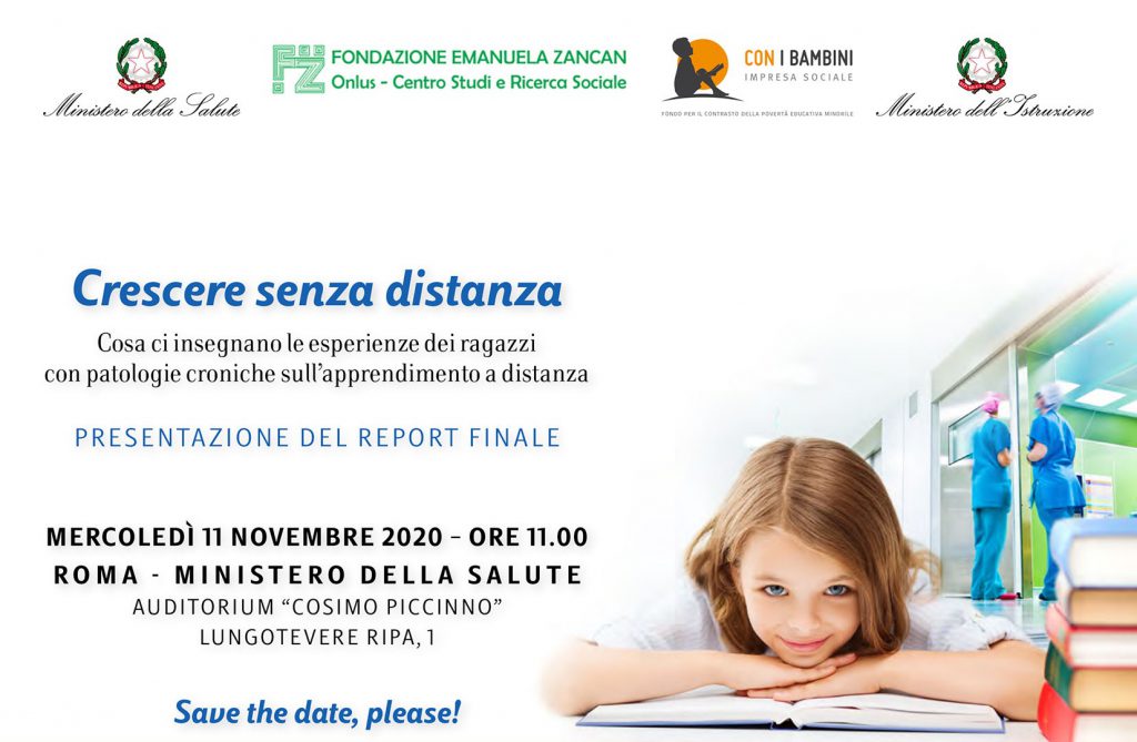 Ministero della Salute, Fondazione Zancan, Con i Bambini e Ministero dell’Istruzione presentano, l’11 novembre alle ore 11, il report finale “Crescere senza distanza. Cosa ci insegnano le esperienze dei ragazzi con patologie croniche sull’apprendimento a distanza”.