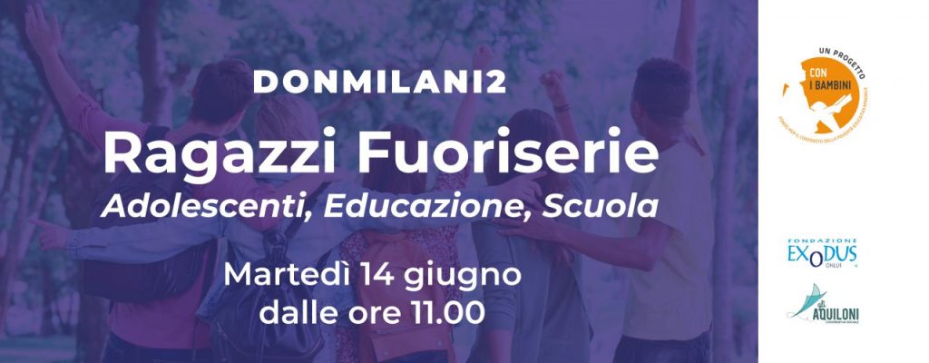 Martedì 14 giugno alle ore 11.00 in diretta sulla pagina Facebook di Fondazione Exodus si svolgerà l’evento conclusivo del progetto nazionale “Donmilani2: Ragazzi Fuoriserie, selezionato dall’impresa sociale Con i Bambini per il Fondo al contrasto della povertà educativa minorile.