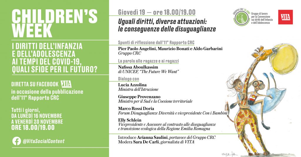Il Gruppo CRC in collaborazione con Vita, in occasione della pubblicazione dell’11° Rapporto CRC, presentano una settimana di appuntamenti online per fare il punto su come l’emergenza sanitaria stia impattando sui diritti delle nuove generazioni.