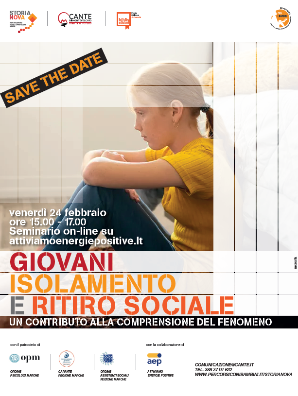 L’associazione Cante di Montevecchio, capofila del progetto Storia Nova, selezionato da Con i Bambini nell’ambito del Fondo per il contrasto della povertà educativa minorile, organizza insieme a Biblis Edizioni il seminario online “Giovani isolamento e ritiro sociale”, sul tema dell’isolamento e del ritiro sociale dei giovani.