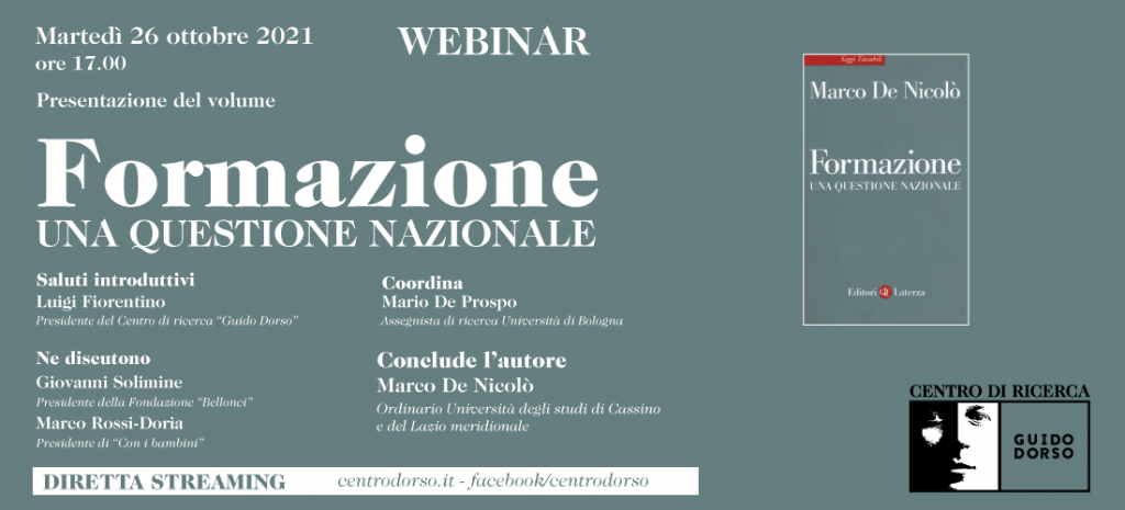 On line – 26 ottobre – Presentazione del volume “Formazione. Una questione nazionale”