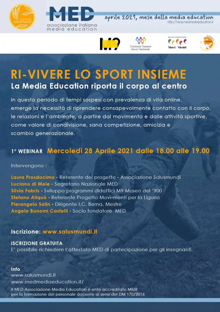 On line – 28 aprile – Webinar “Ri-vivere lo sport insieme. La media education riporta il corpo al centro”