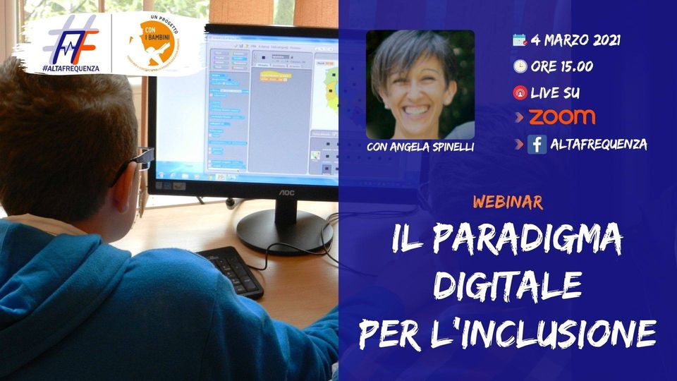 In diretta su ZOOM e sulla pagina AltaFrequenza appuntamento giovedì 4 marzo 2021 alle ore 15.00 “Il paradigma digitale per l’inclusione”, webinar curato dalla ricercatrice dell’Università di Roma Tor Vergata, Angela Spinelli per il progetto #AltaFrequenza