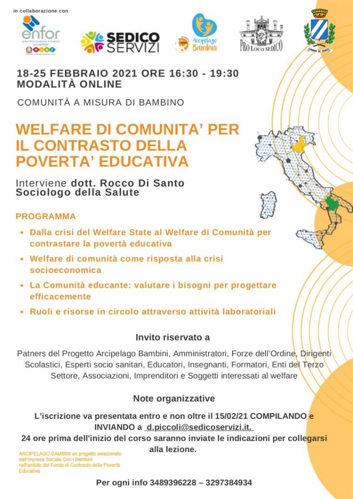 On line – Dal 18 al 25 gennaio – Seminario “Welfare di comunità per il contrasto della povertà educativa”