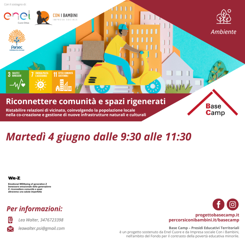 Un invito speciale per tutti coloro che desiderano essere protagonisti nella trasformazione e nella rigenerazione del proprio quartiere. In collaborazione con il progetto europeo We-Z, dedicato alla promozione di relazioni inclusive e al ristabilire dei legami comunitari, Base Camp Roma presenta un evento emozionante e coinvolgente. Base Camp sarà il fulcro di un’iniziativa volta a riaccendere il senso di vicinato e a coinvolgere attivamente la popolazione locale nella co-creazione e gestione di nuove infrastrutture naturali e culturali.