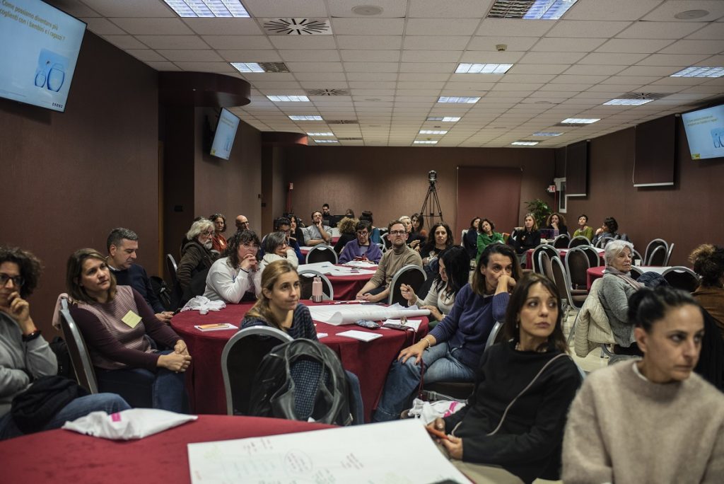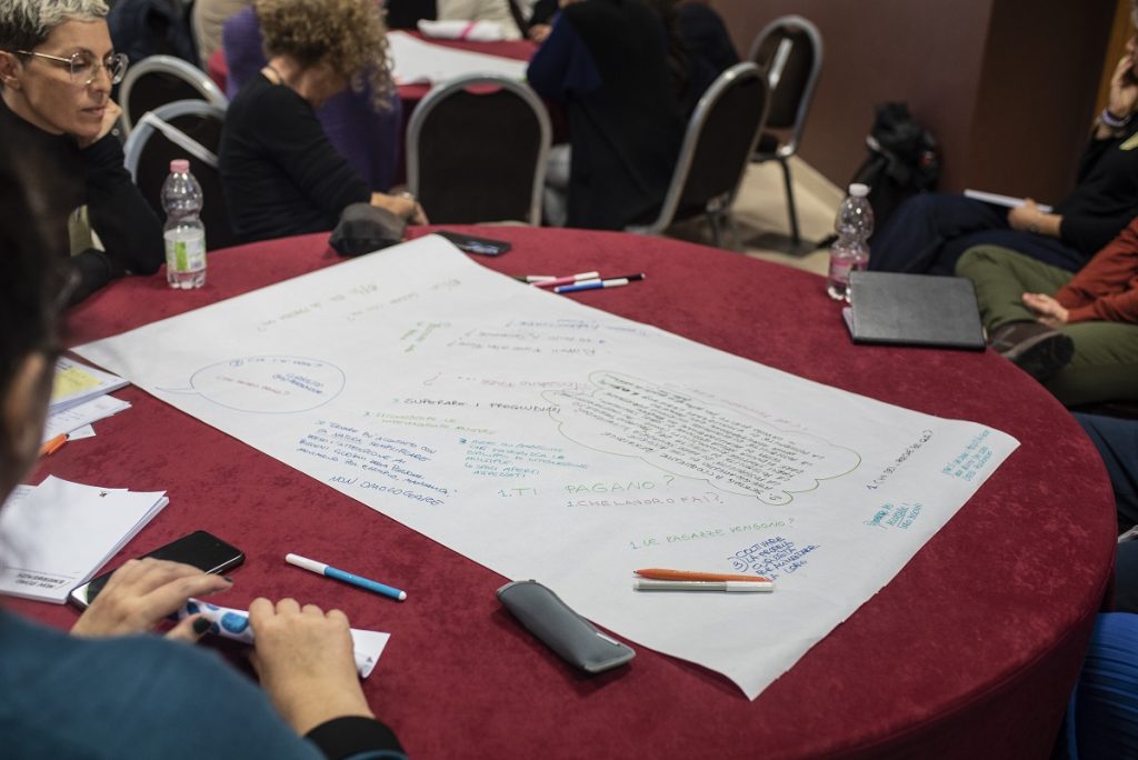 In contemporanea, presso il centro congressi Roma Eventi, si è svolto l’incontro delle comunità di pratiche del Centro Italia in modalità world cafè, introdotto da Stefano Laffi, sociologo e co-fondatore della cooperativa di ricerca e intervento sociale “Codici” di Milano, e condotto dalla facilitatrice Valeria Lucatello.